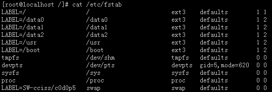 LABEL=/data2 /data2 ext3 defaults 1 2